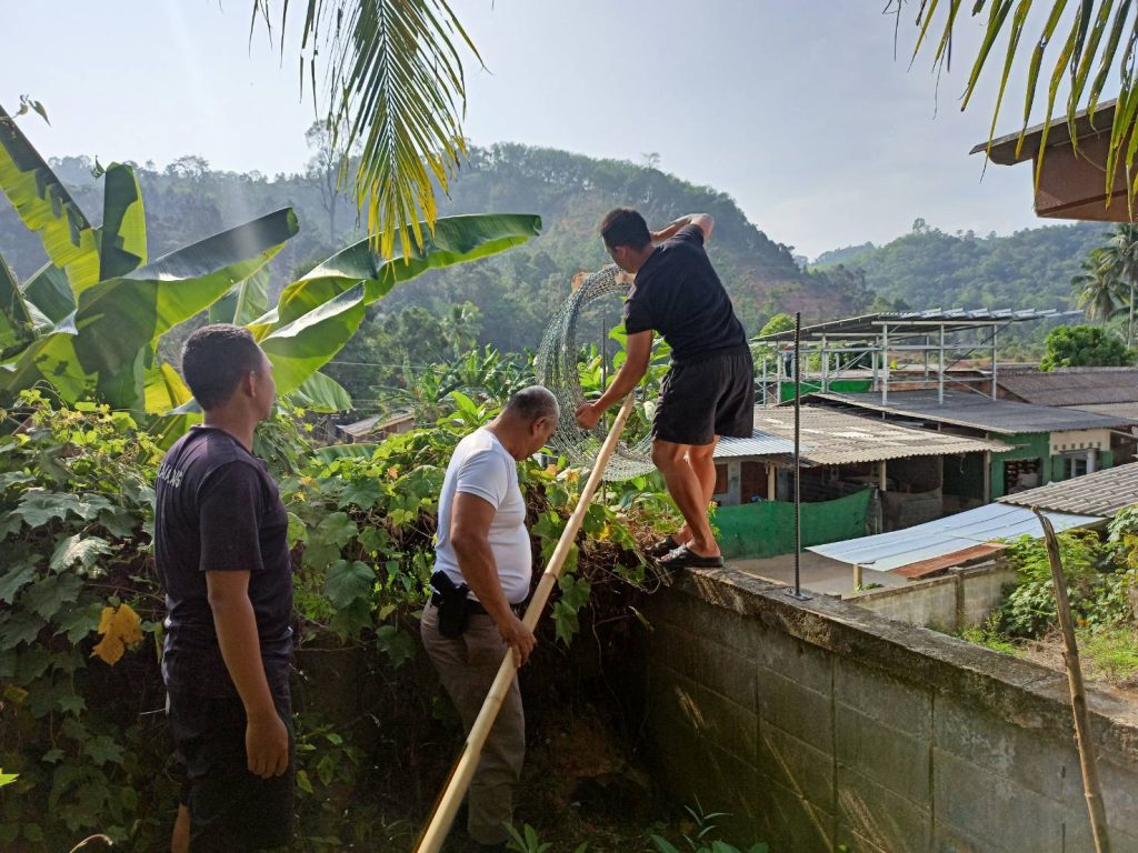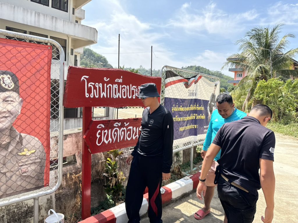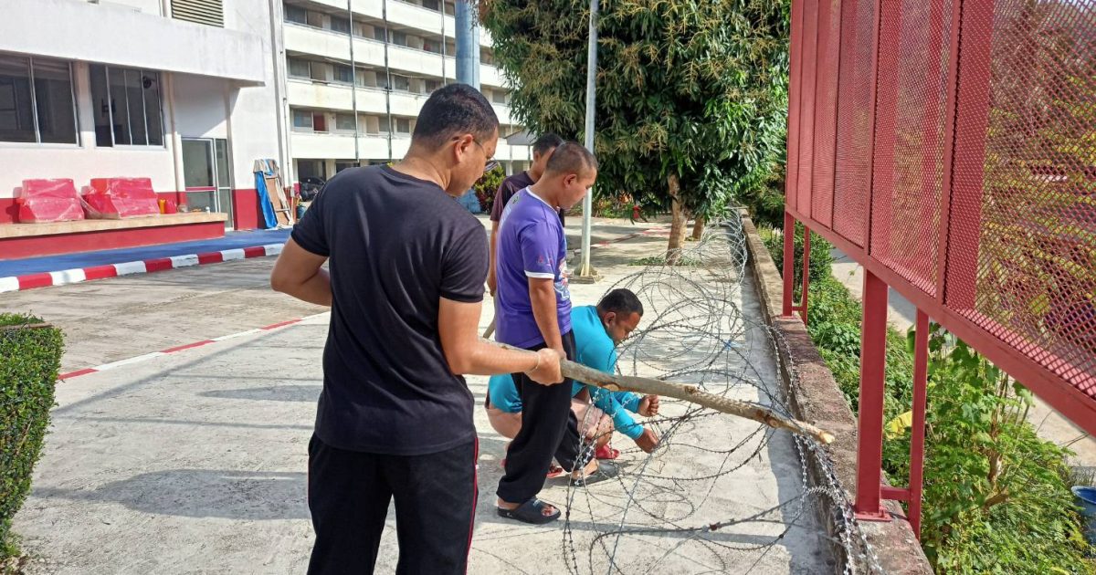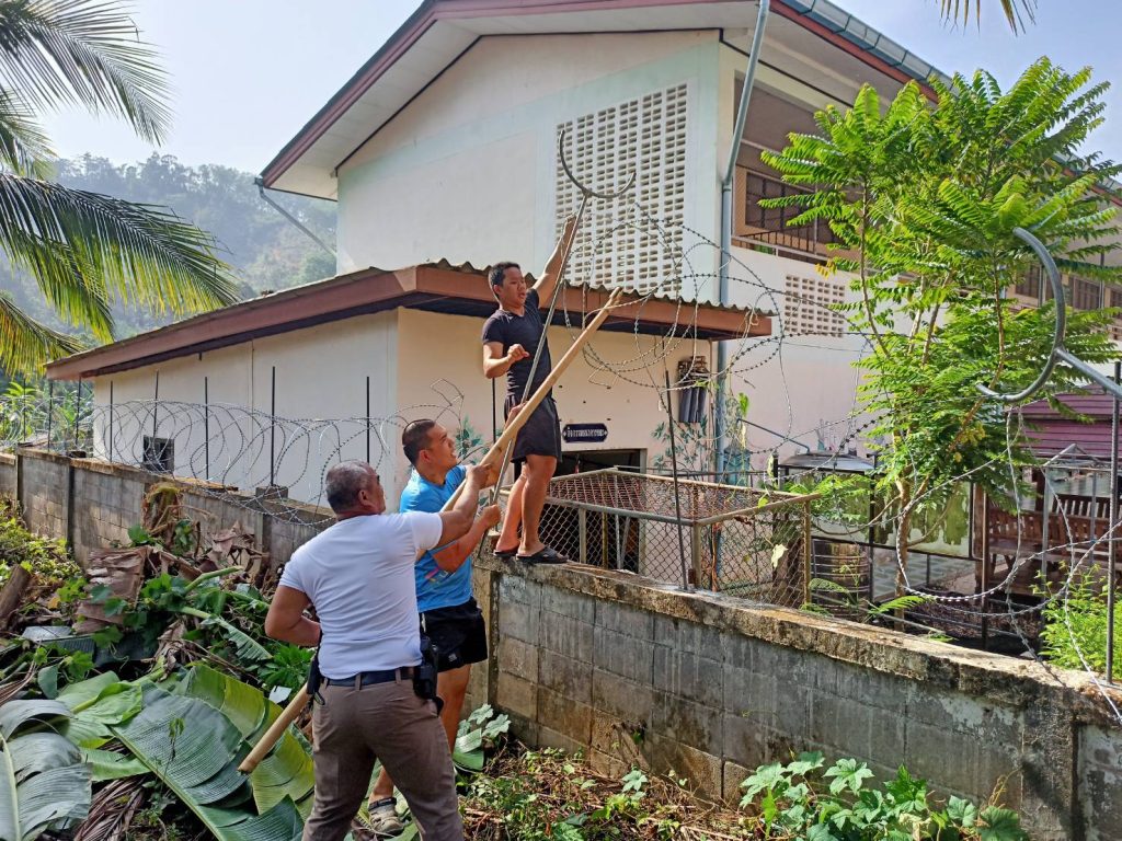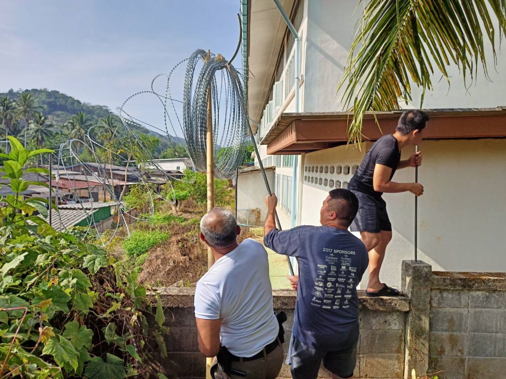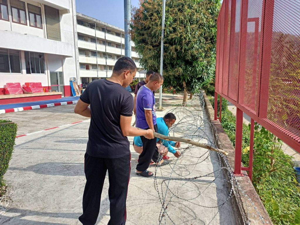 กิจกรรม 5 ส. ประจำสัปดาห์ ขึงลวดหนามหีบเพลงกำแพงด้านข้างติดกับโรงเรียนบ้านใหม่วันครู, ทาสีตัวอักษรป้ายโรงพัก