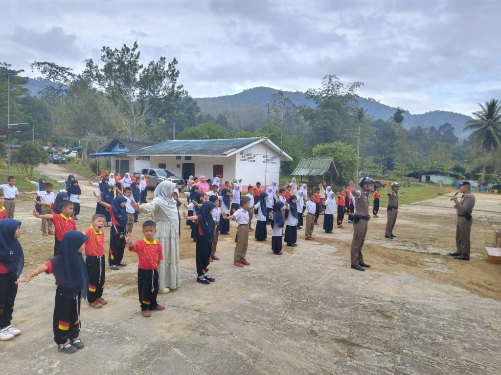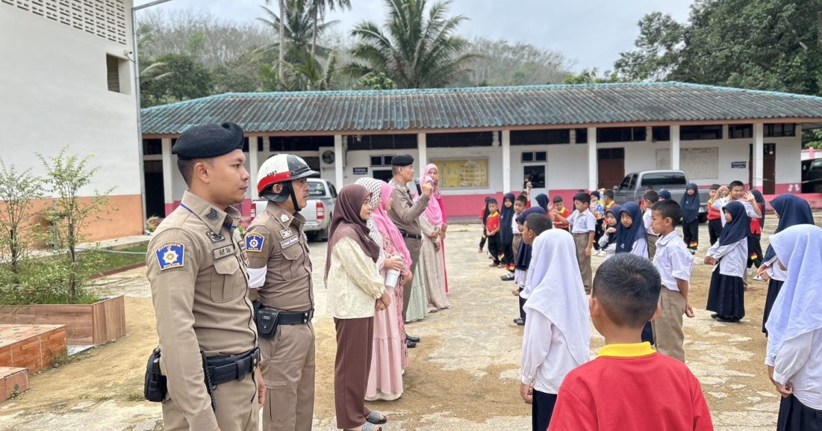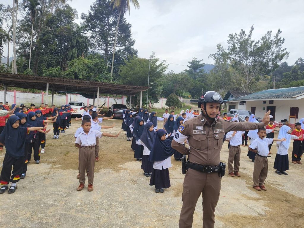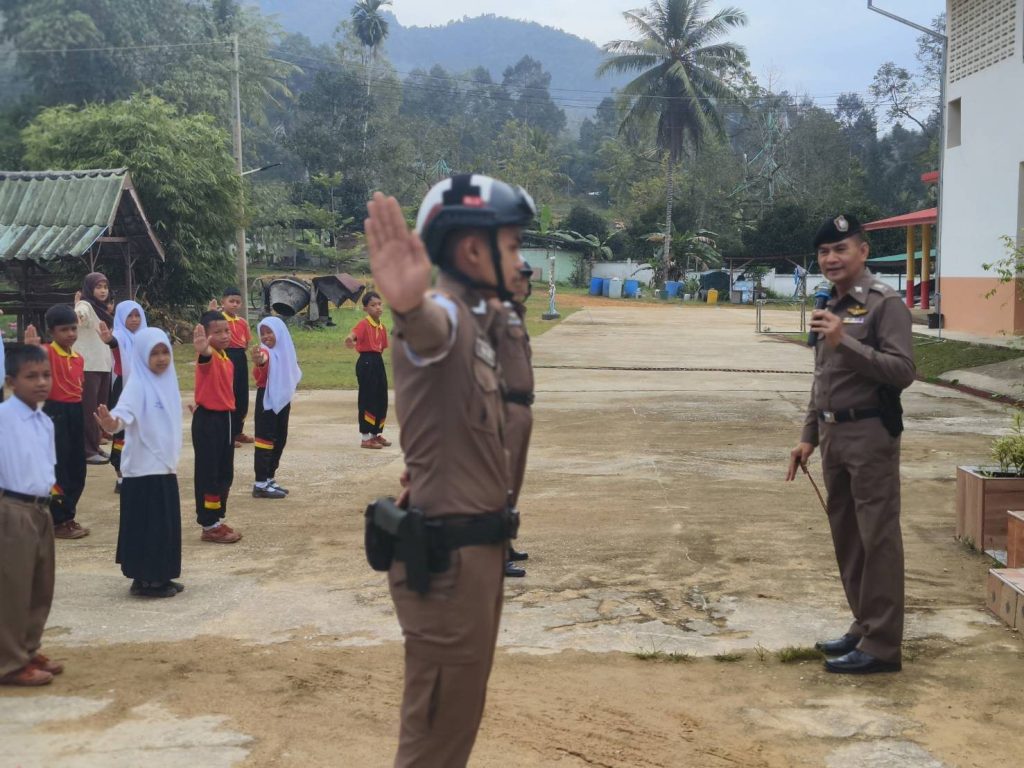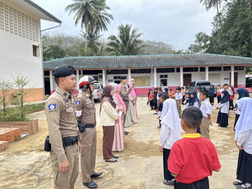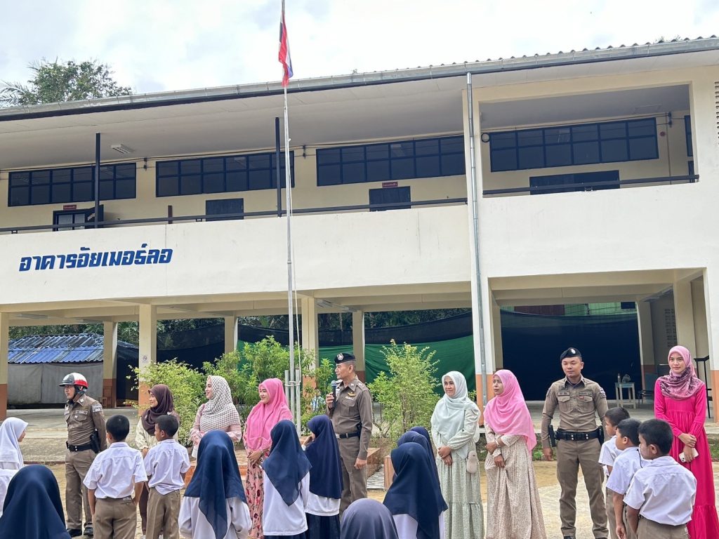 วันที่ 9 ม.ค. 2567 เวลา 08.00 น.พ.ต.อ.ธีรภัทร ปิยะถาวร ผกก.สภ.อัยเยอร์เวงมอบหมายให้ พ.ต.ท.สมหมาย มะณีจันทร์ รอง ผกก.ป.สภ.อัยเยอร์เวง พร้อมด้วยชุดมวลชนสัมพันธ์ และ จราจรตรวจเยี่ยม คณะครู ,นักเรียน ดำเนินโครงการครูหน้าเสาธง (ครู 5 นาที) เพื่อให้ความรู้เรื่องการป้องกันยาเสพติดในสถานศึกษา และกฎระเบียบวินัยจราจร พร้อมได้ประชาสัมพันธ์ตามมาตรการป้องกันและปราบปรามการแข่งรถ และความผิดอื่นที่เกี่ยวข้อง เพื่อป้องปรามไม่ให้มีการรวมกลุ่ม ในเด็กนักเรียน ณ โรงเรียนบ้านธารมะลิ ม.5 อ.เบตง จ.ยะลา