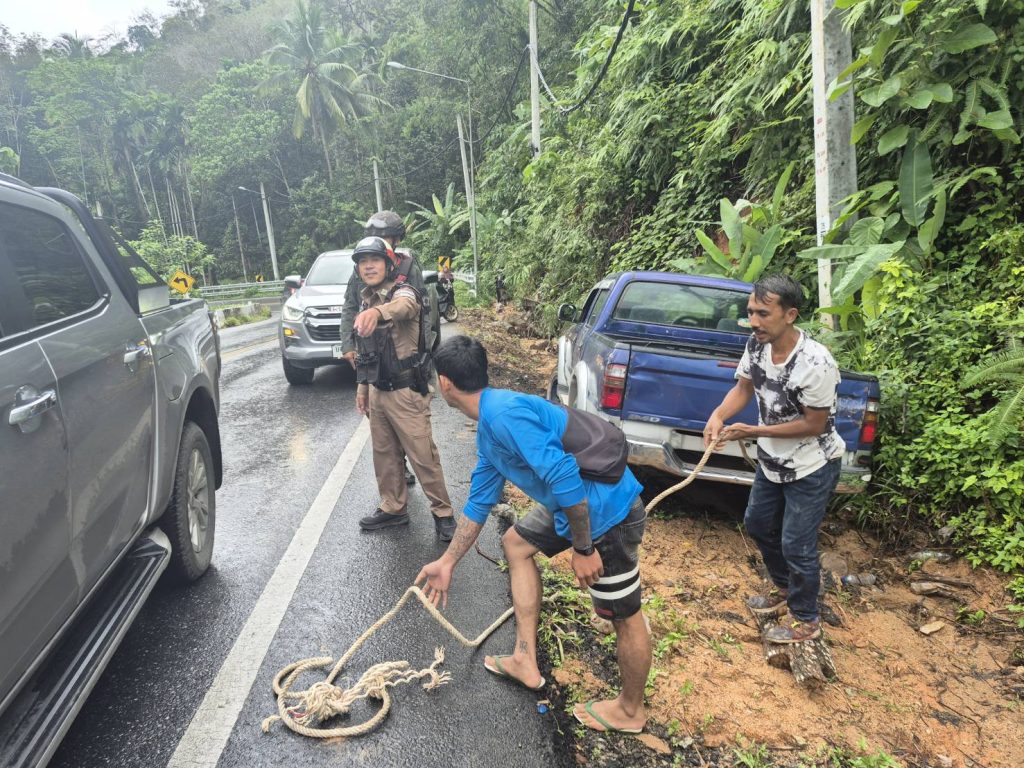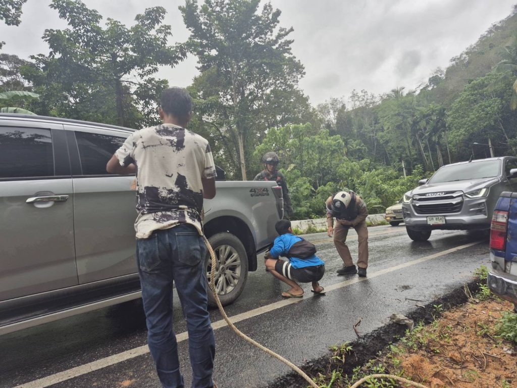 ช่วยเหลือลากรถยนต์ของประชาชนเนื่องจากตกไหล่ทาง บริเวณ กม.๒๔ ถนน๔๑๐ ต.อัยเยอร์เวง