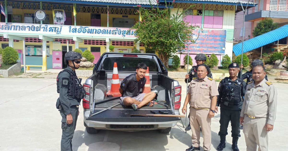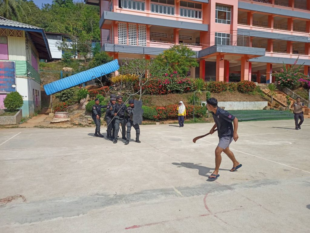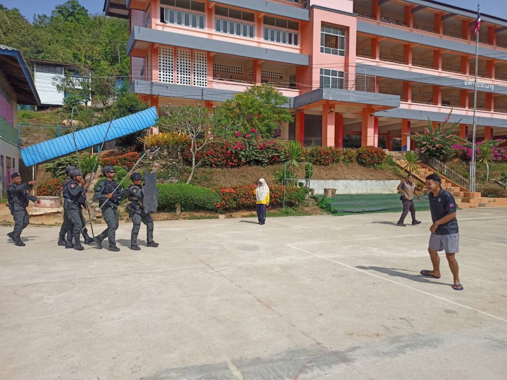 ซักซ้อมแผนเผชิญเหตุ และให้ความรู้เหตุบุคคลคลุ้มคลั่ง คณะครู นักเรียน