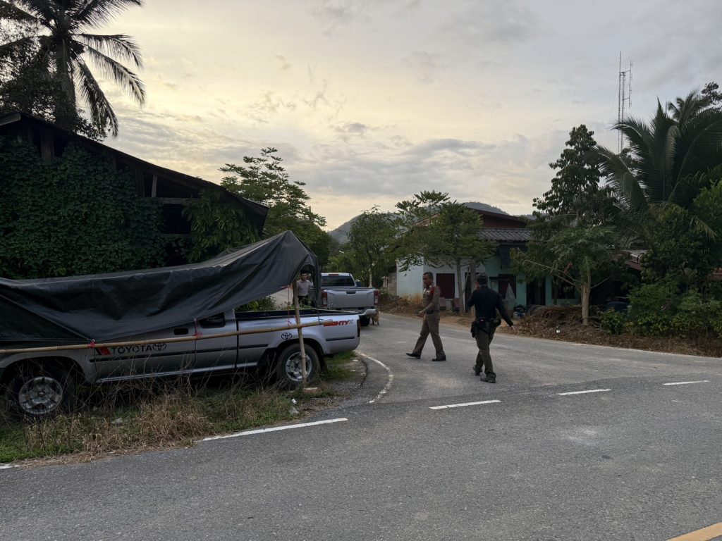 ตรวจสอบที่เกิดเหตุ เหตุทำให้เสียทรัพย์ บริเวณ ปากทางเข้าจุดชมวิวทะเลหมอกอัยเยอร์เวง(บ้านวังใหม่)