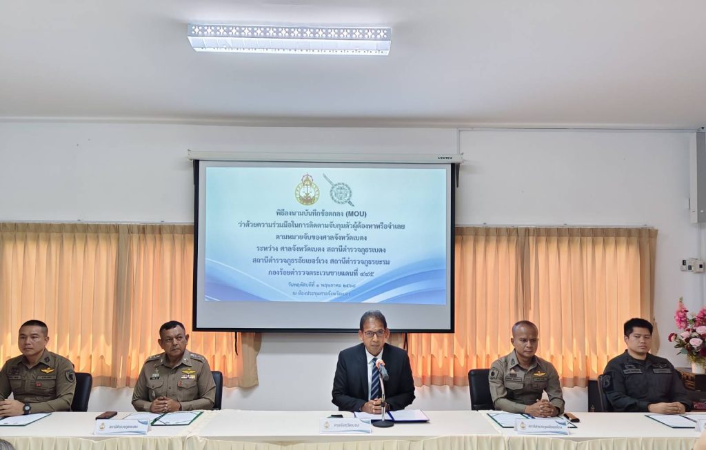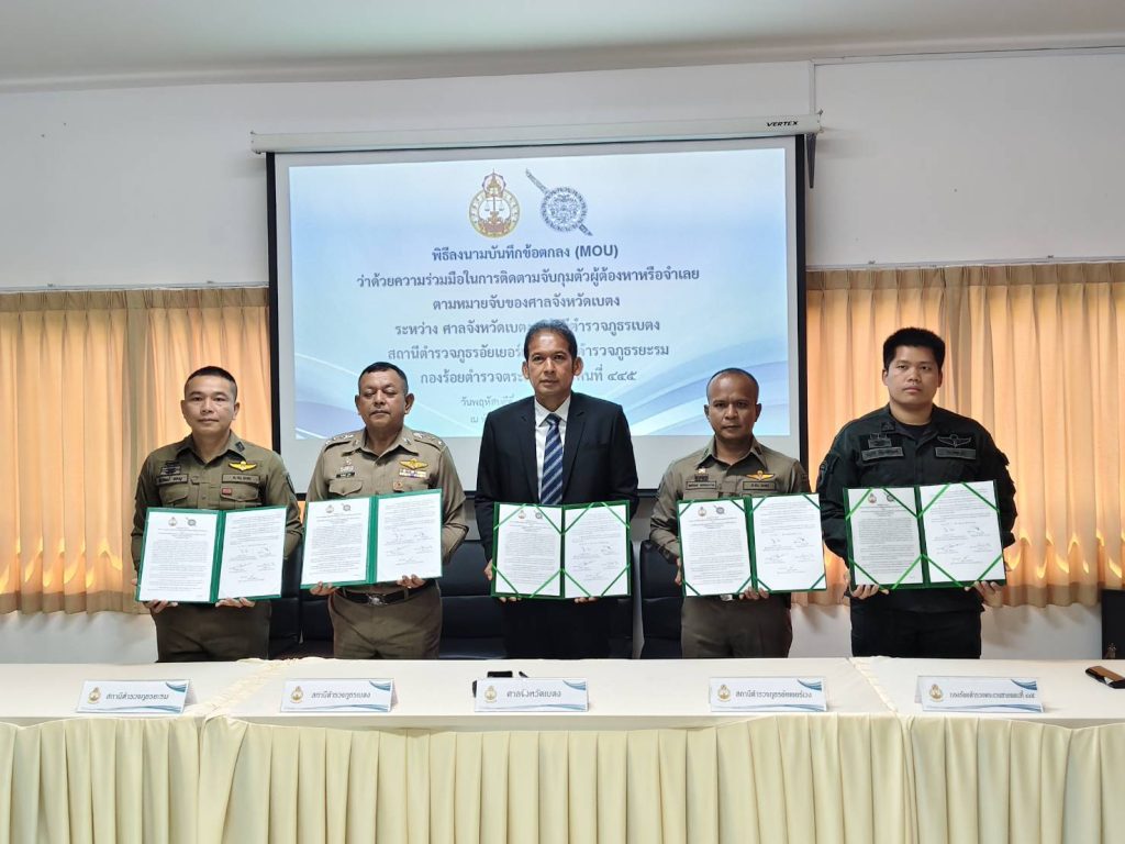 พิธีลงนามบันทึกข้อตกลง(MOU) ว่าด้วยความร่วมมือในการติดตามจับกุมตัวผู้ต้องหาหรือจำเลยตามหมายจับของศาลจังหวัดเบตง