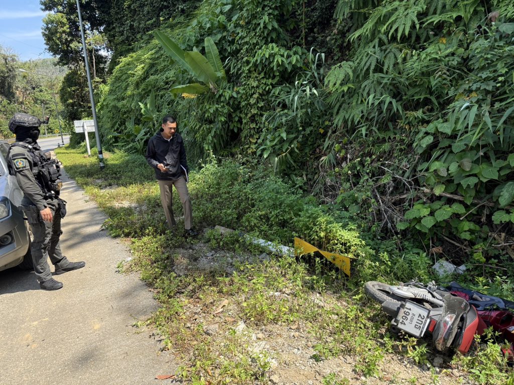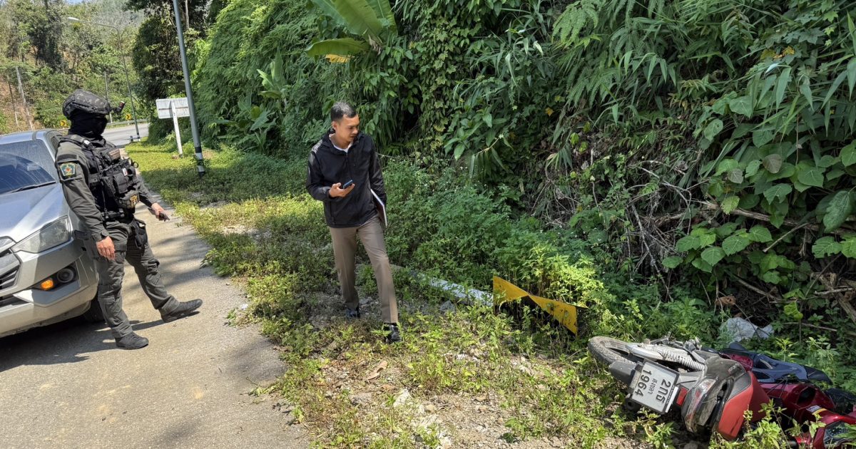 รถจักรยานยนต์ชนป้ายเตือนแนวโค้ง 14 มกราคม 2569 โดย admin / งานสอบ,ประจำเดือน มกราคม สอบ วันนี้ 14 ม.ค. 2569 เวลา 11.15 น. ภายใต้การอำนวยการของ พ.ต.อ.ทศพล พลอยงาม ผกก.สภ.อัยเยอร์เวง พ.ต.ท.สุรเชษฐ์ ปาณียะ รอง ผกก.(สอบสวน) สภ.อัยเยอร์เวง พ.ต.ท.ไพฑูรย์ ทองพูน สว.(สอบสวน)สภ.อัยเยอร์เวง สั่งการให้ ร.ต.ท.ธีรภัทร จิตมานะ รอง สว.(สอบสวน)สภ.อัยเยอร์เวง ว.4 ตรวจสอบที่เกิดเหตุ ว.40 รถจักรยานยนต์ชนป้ายเตือนแนวโค้ง เหตุเกิดที่ ริมถนนสาย 410 บ้าน กม.27 ม.1 ต.อัยเยอร์เวง อ.เบตง จ.ยะลา -มีผู้ได้รับบาดเจ็บ 2 ราย กู้ภัยอัยเยอร์เวงนำส่งโรงพยาบาลเบตงเรียบร้อย -มีป้ายเตือนแนวโค้งเสียหาย 1 ป้าย FacebookFacebookXXLINELine