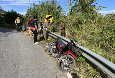 วันนี้ 9 ม.ค. เวลา 11.00 น. ศูนย์วิทยุ สภ. อัยเยอร์เวง ได้รับแจ้งเหตุ จากผู้ใหญ่บ้านหมู่ 2 ต.อัยเยอร์เวง ว่ามีคนขับรถพุ่งชนรั่วกั้นขอบทาง บริเวณ บริเวณริมถนนสาย ยล.3040 กม.ที่ 3 ม.2 ต.อัยเยอร์เวง อ.เบตง จาก.ยะลา จากการสอบถามญาติผู้เสียชีวิต แจ้งว่าตามเวลาที่เกิดเหตุ ผู้เสียชีวิตได้ขับขี่รถจักรยานยนต์ยี่ห้อ ฮอนด้า สีดำแดง ยะลา บรรทุกกระสอบใส่ยางพารา เดินทางกลับจากสวนยางพารา เมื่อมาถึงที่เกิดเหตุ ซึ่งเป็นทางโค้งผู้เสียชีวิตได้เสียหลัก และได้ประสบอุบัติเหตุบริเวณที่ดังกล่าว จึงได้เเจ้งเจ้าหน้าที่ ที่เกี่ยวข้องเข้าตรวจสอบที่เกิดเหตุ