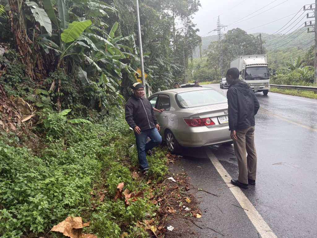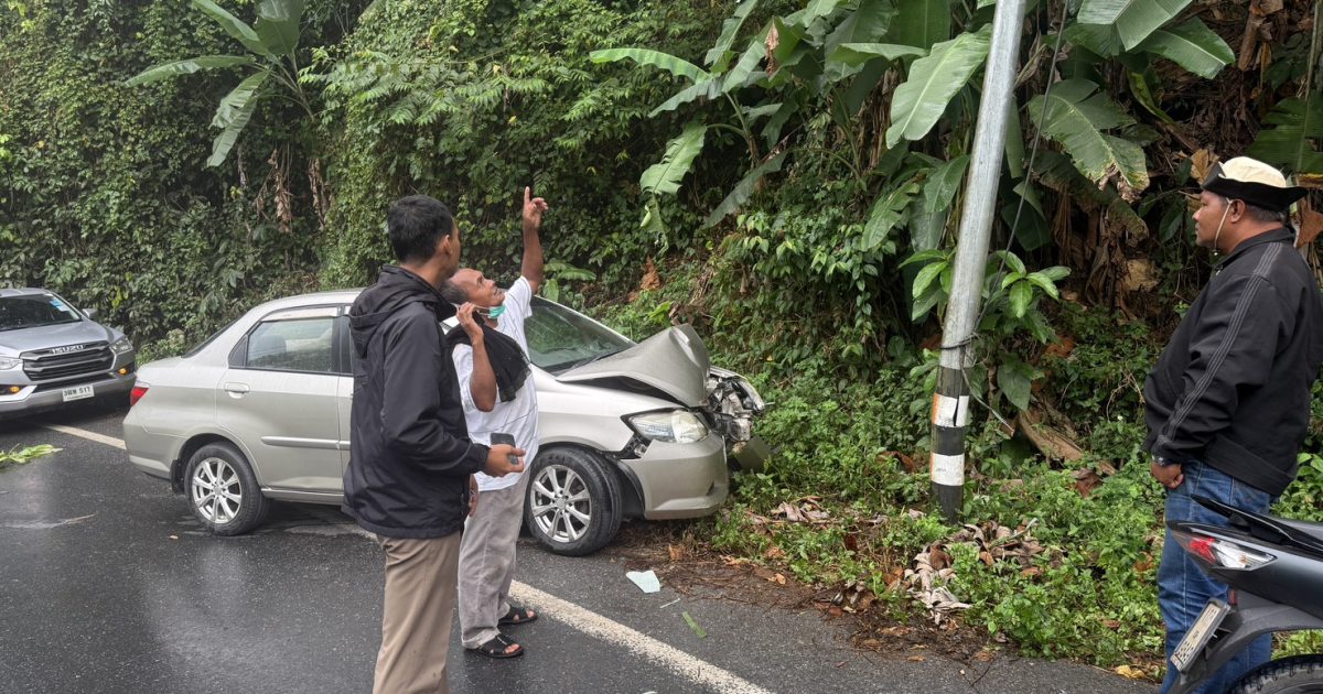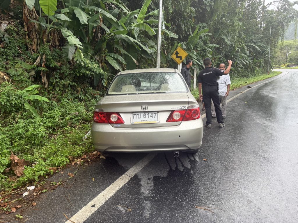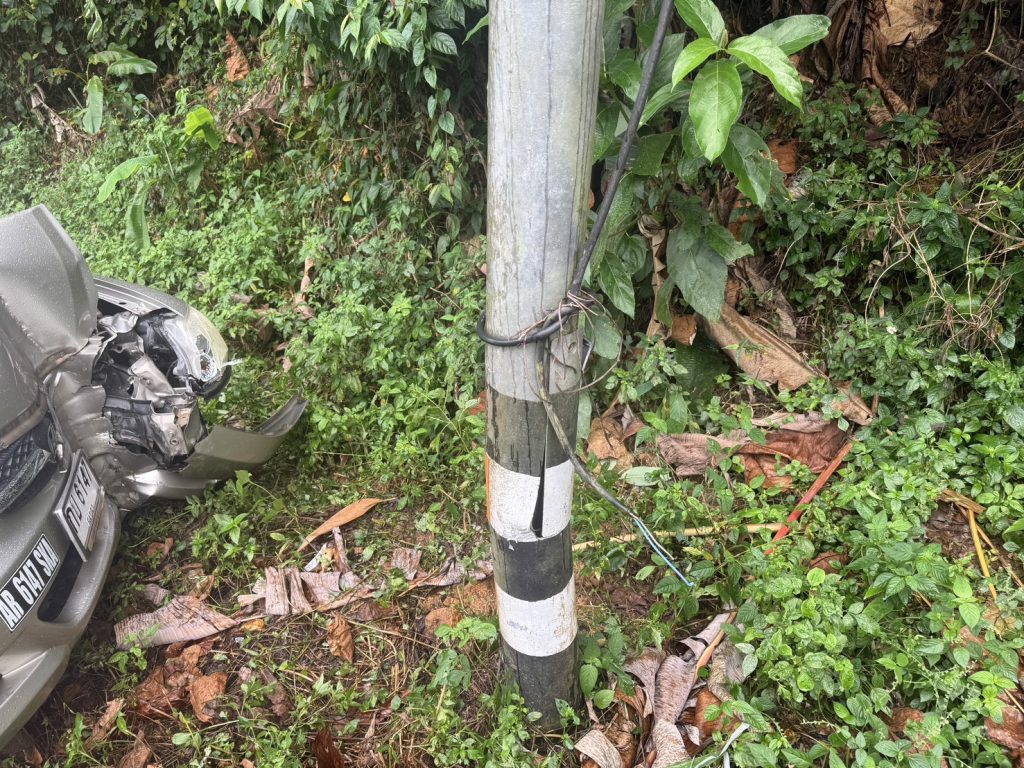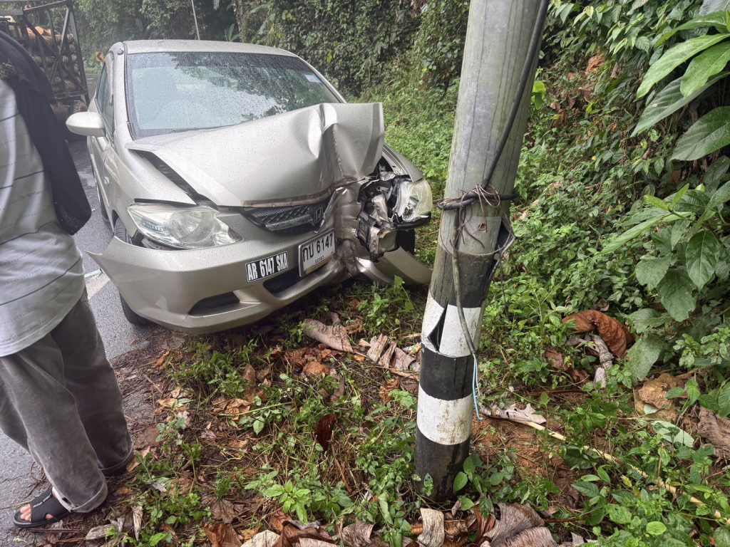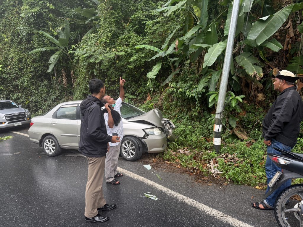 รถยนต์ชนเสาไฟส่องสว่างเหตุเกิดที่ ริมถนนสาย 410 กม.24
