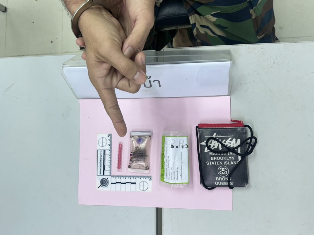 – ยาเสพติดให้โทษประเภท ๑ (ยาบ้าหรือเมทแอมเฟตามีน) ชนิดเม็ดกลมแบนสีแดงประทับด้วยตัวอักษร WY ด้านหนึ่ง อีกด้านหนึ่งผิวเรียบ จำนวน 8 เม็ด แบ่งบรรจุอยู่ในหลอดพลาสติกสีขาวคาดแดงปิดหัวท้ายด้วยความร้อน จำนวน 1 หลอด น้ำหนักรวมหลอดบรรจุประมาณ 0.97 กรัม บรรจุอยู่ในถุงใส่ยาฯชนิดแบบกดปิด-ดึงเปิด ซึ่งซุกซ่อนอยู่ในกระเป๋าคล้องคอสีดำ