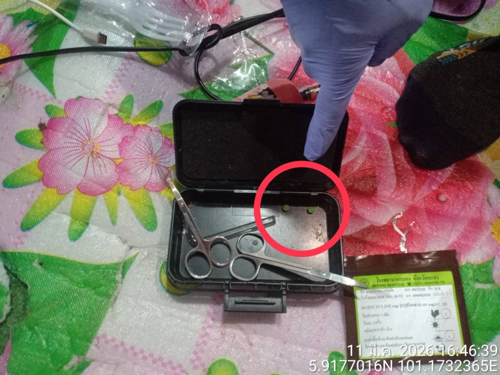 1.ยาเสพติดให้โทษประเภท 1 (ยาบ้าหรือเมทแอมเฟตามีน) ชนิดเม็ดกลมแบนสีเขียว ประทับด้วยตัวอักษร Y1 ด้านหนึ่งอีกด้านหนึ่งประทับด้วยตัวอักษร A ซุกซ่อนอยู่ในกล่องพลาสติกสีดำ จำนวน 2 เม็ด น้ำหนักเฉพาะของกลางยาบ้าทั้งหมดประมาณ 0.24 กรัม