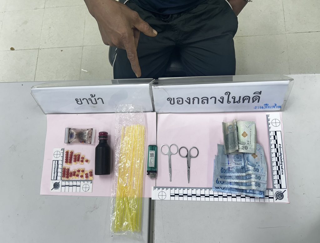 1.ยาเสพติดให้โทษประเภท 1 (ยาบ้าหรือเมทแอมเฟตามีน) ชนิดเม็ดกลมแบนสีแดงประทับด้วยอักษร WY ด้านหนึ่ง อีกด้านหนึ่งผิวเรียบ จำนวน 5 เม็ด บรรจุอยู่ในหลอดพลาสติกสีขาวใสแถบสีเหลืองปิดด้วยความร้อน จำนวน 2 หลอด น้ำหนักรวมหลอดบรรจุ ประมาณ 1.26 กรัม รวมยาบ้าจำนวน 10 เม็ด