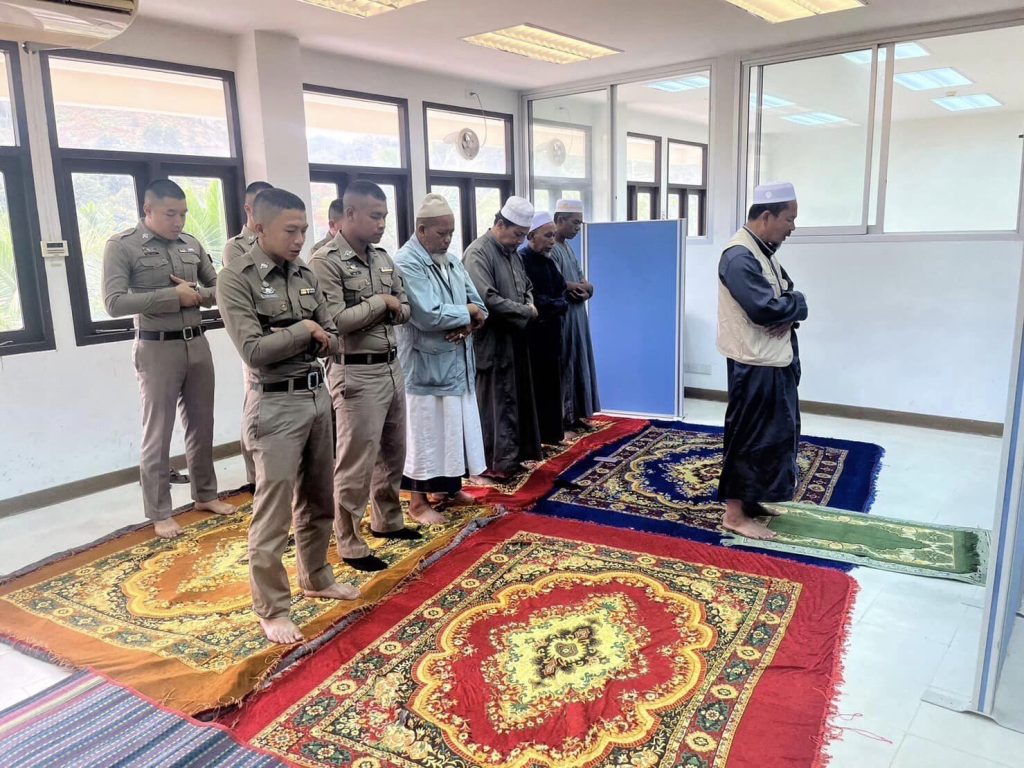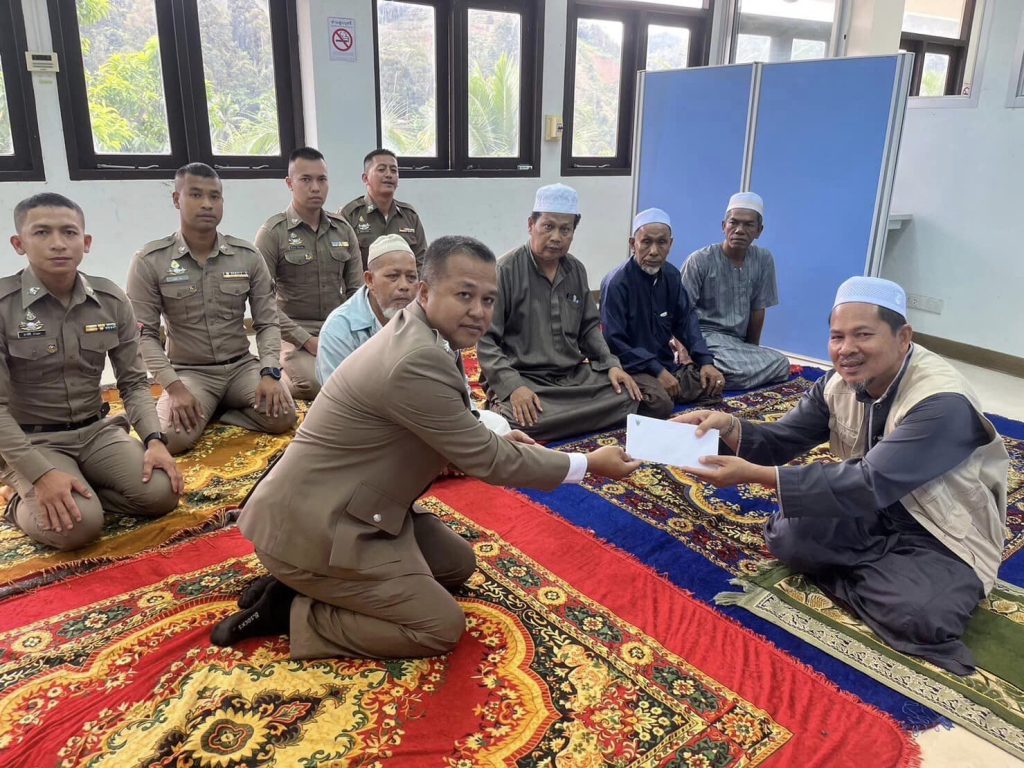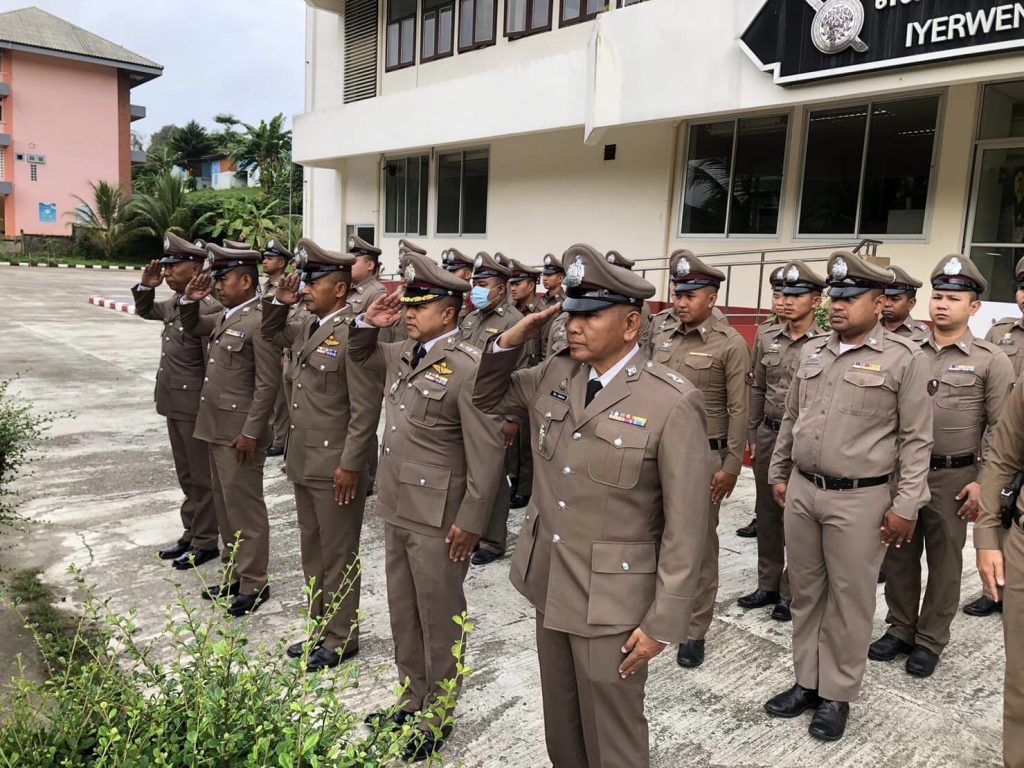 วันนี้ 17 ตุลาคม 2566 เวลา07.00 น. พ.ต.อ.ธีรภัทร ปิยะถาว ผกก.สภ.อัยเยอร์เวงพร้อมทั้งข้าราชการตำรวจทุกนายได้เข้าร่วมกิจกรรมวันตำรวจ และร่วมกันเคารพธงชาติกล่าวคำสัตย์ปฏิญาณตน อุดมคติตำรวจโดยมี พ.ต.อ.ธีรภัทร ปิยะถาวร ผกก.สภ.อัยเยอร์เวง ได้อ่านสารของ ผบ.ตร.พร้อมกล่าวมอบนโยบายการปฏิบัติงานของข้าราชการตำรวจและได้เดินทางประกอบพิธีปู่ฤาษี ต่อมา เวลา10.00 น. ข้าราชการตำรวจที่นับถือศาสนาพุทธ ร่วมทำบุญถวายภัตตาหารและวัตถุปัจจัยแก่พระสงฆ์ จำนวน 3 รูป และข้าราชการตำรวจที่นับถือศาสนาอิสลามได้ทำพีธีละมาด ดูอาร์ รับประทานอาหารร่วมกับข้าราชการตำรวจ