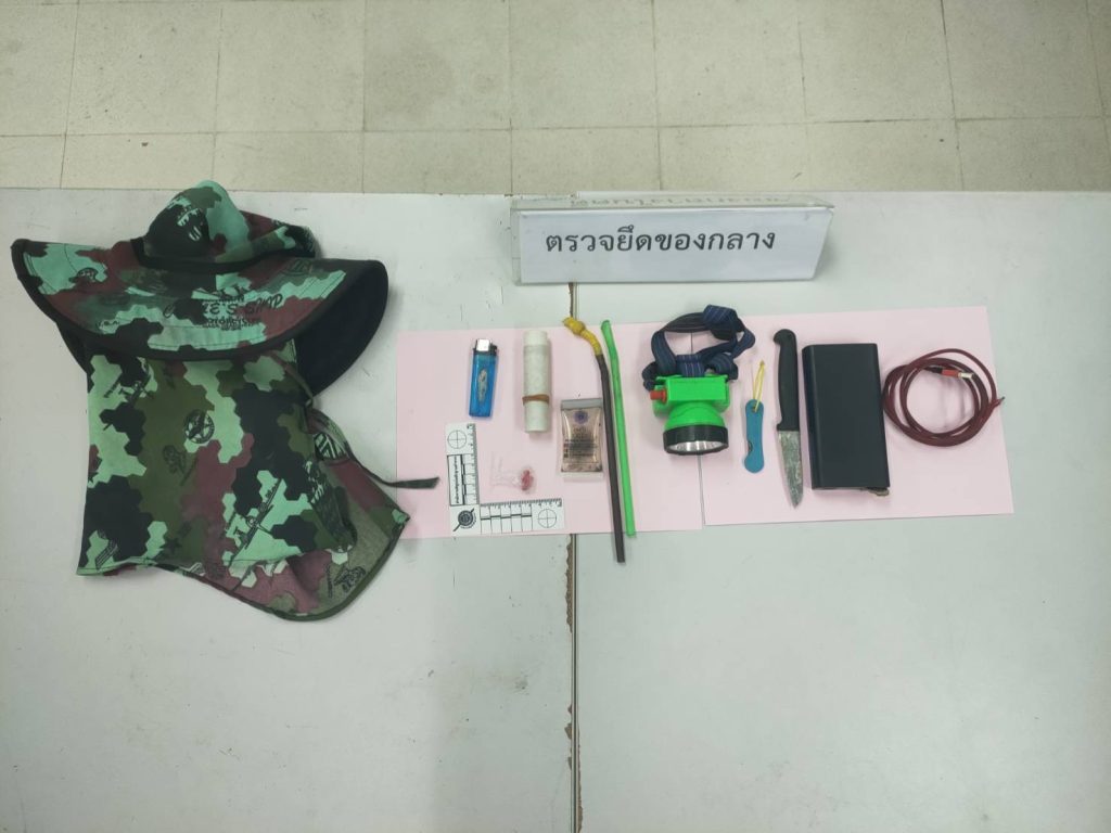 ทั้งนี้เจ้าหน้าที่ตำรวจชุดตรวจยึดจึงได้ตรวจยึดของกลางที่ตรวจพบภายในเพิงพักที่เกิดเหตุดังกล่าวไว้เป็นของกลาง นำส่งพนักงานสอบสวน ร้องทุกข์กล่าวโทษต่อพนักงานสอบสวนให้ดำเนินคดีตามกฎหมายต่อไป