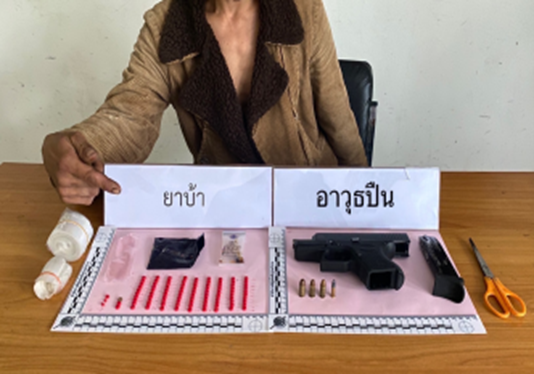 โดยกล่าวหาว่า “จำหน่ายยาเสพติดให้โทษประเภท 1 (ยาบ้าหรือเมทแอมเฟตามีน) โดยการมีไว้เพื่อจำหน่ายโดยไม่ได้รับอนุญาต,เสพยาเสพติดให้โทษประเภท 1 (ยาบ้าหรือเมทแอมเฟตามีน) โดยผิดกฎหมาย,มีอาวุธปืนและเครื่องกระสุนปืนไว้ในครอบครองโดยไม่ได้รับอนุญาต” ทั้งนี้ได้นำตัวพร้อมของกลางส่ง พงส.สภ.อัยเยอร์เวง เพื่อดำเนินคดีตามกฎหมายต่อไป