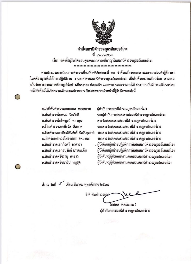 หมายเหตุ : สถานีตำรวจภูธรอัยเยอร์เวงไม่มีรายการประเภทของบริจาค